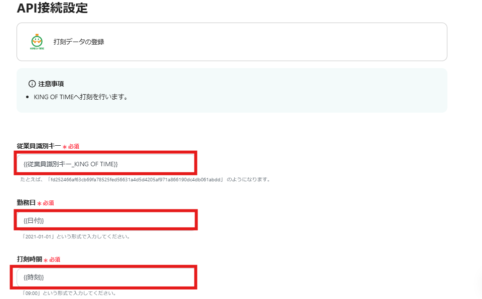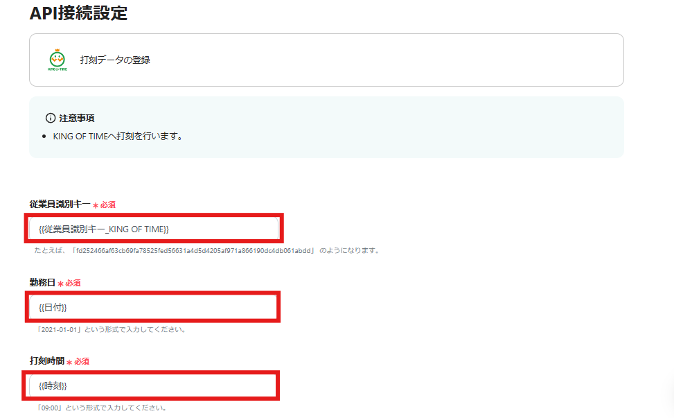 ②KING OF TIMEで前日の打刻漏れを検知しChatworkに通知する