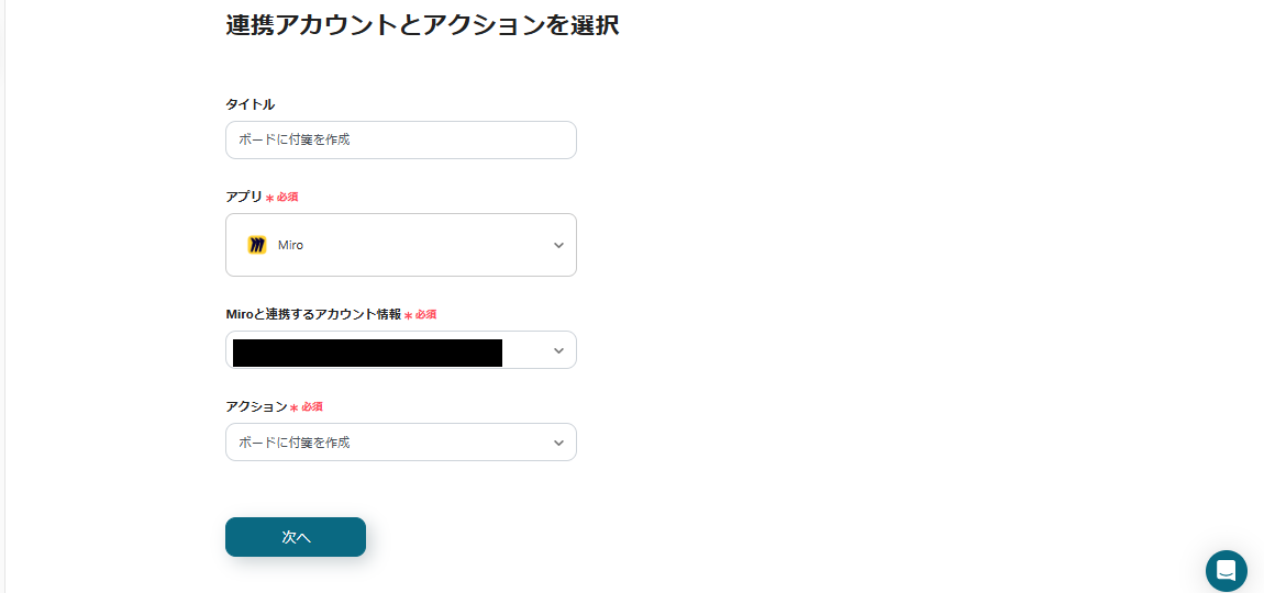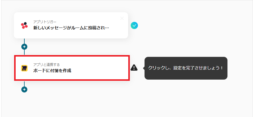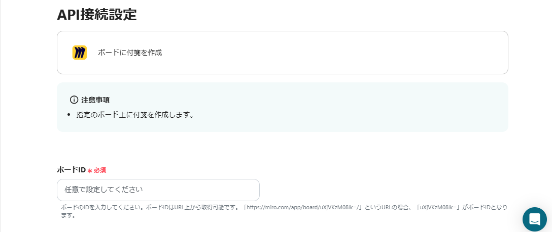 このように設定することで、Chatworkのメッセージが送信されたらMiroのボードに付箋として自動で追加できます。