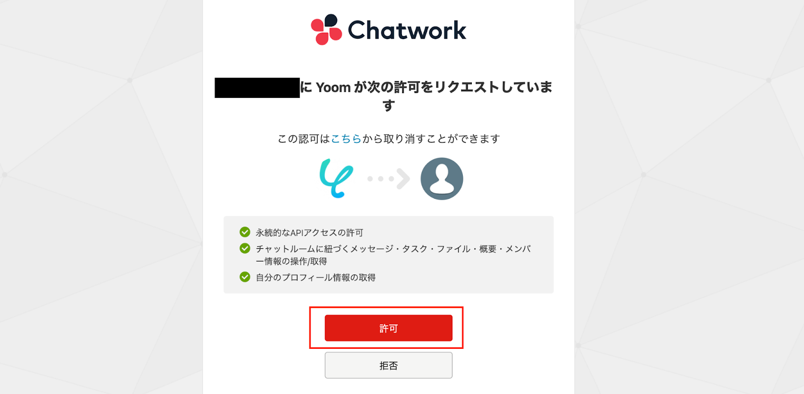 連携許可のリクエスト画面が表示されるので、内容を確認後「許可」をクリックしてください。