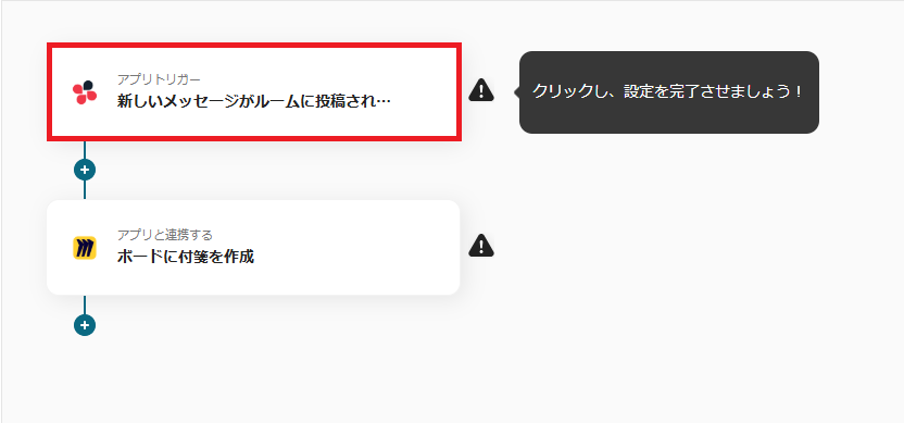 これで、「Chatworkでメッセージが投稿されたらMiroに追加する」フローの完成です。