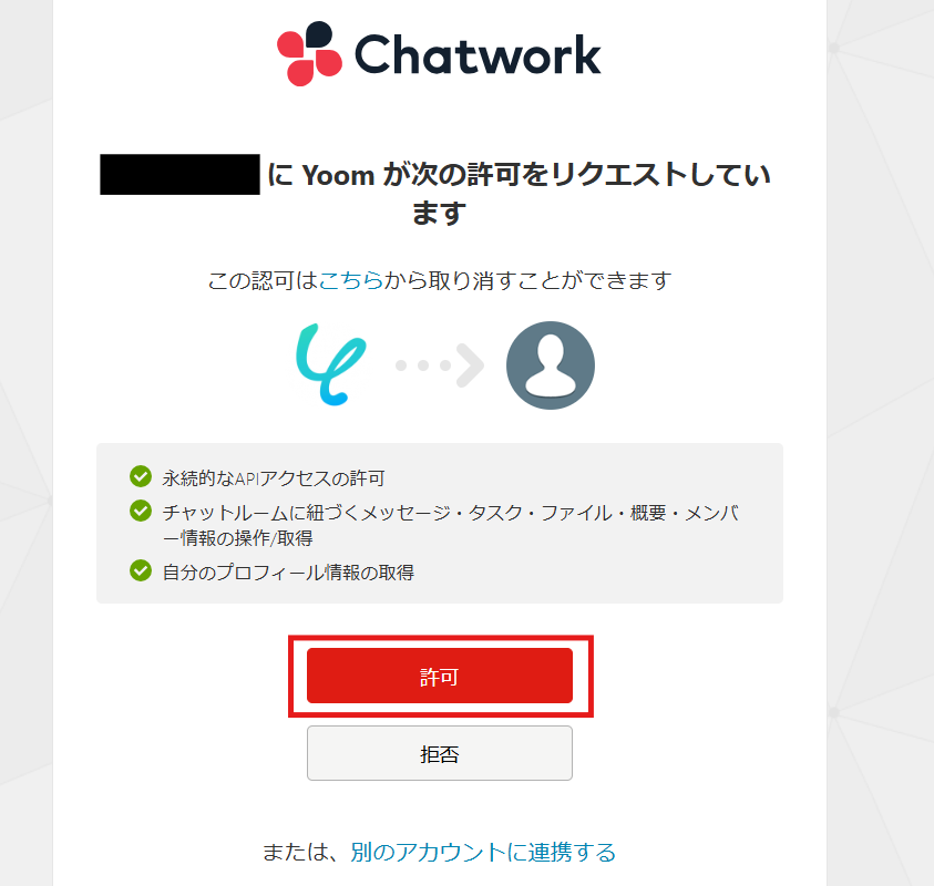 2.Yoomと接続したいChatworkのアカウントを選択し、「許可する」をクリックします。