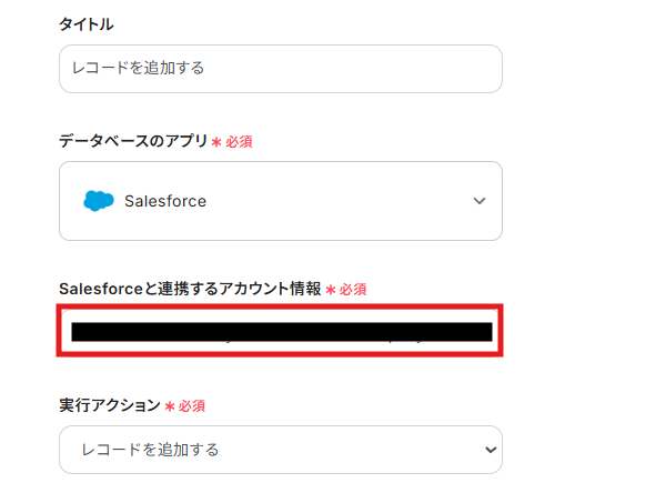 (2)「Salesforceと連携するアカウント情報」にリードを登録したいSalesforceのアカウント情報を入力します。