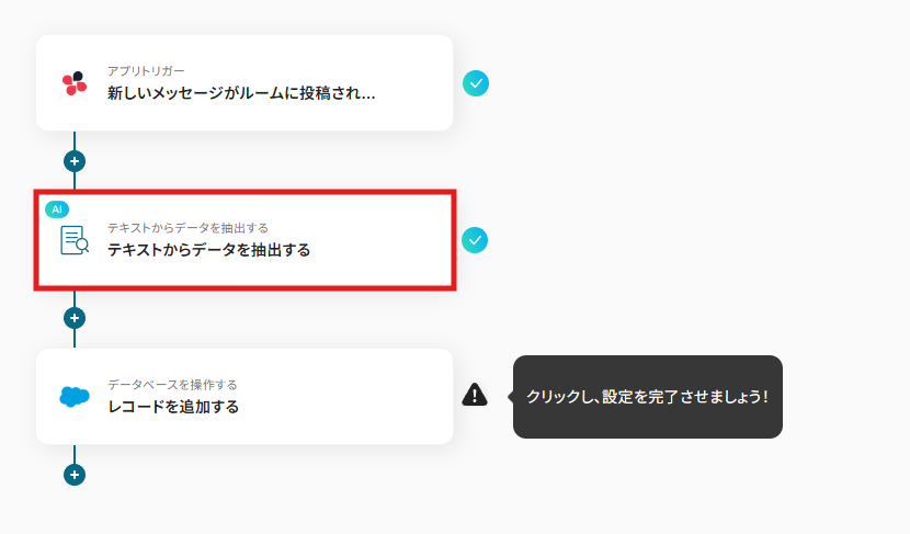 そんな悩みを感じている方に試していただきたいのが、ChatworkとSalesforceの自動連携です。たとえば、Chatworkに投稿されたメッセージからAIがリード情報や活動履歴を抽出して、そのままSalesforceに登録するといったことが可能になります。これまで手作業で行っていた面倒な入力作業を一切省くことができ、対応スピードと正確性が大きく向上するでしょう。