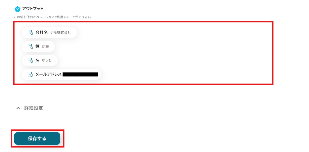 問題なく抽出されていれば、「保存する」をクリックして設定完了です。