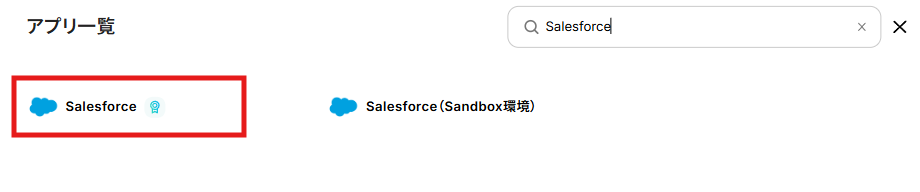 1.「Salesforce」と検索し、アプリ一覧からSalesforceを選択します。