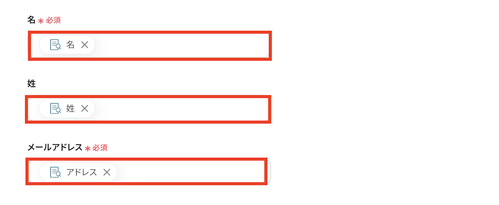 今回は、参加者登録に必要な「姓、名、アドレス」を抽出します。