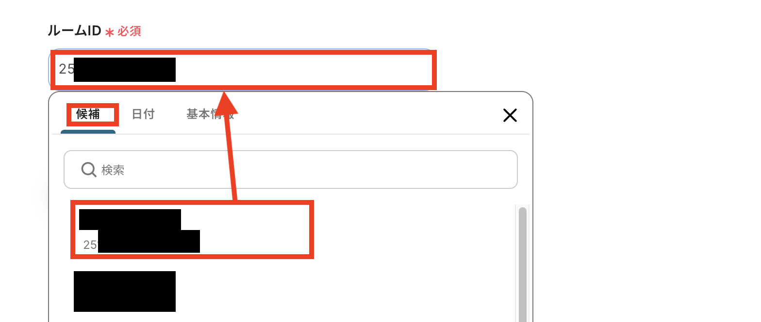 どのルームから参加者情報を取得するのか、ルームIDを選びましょう!