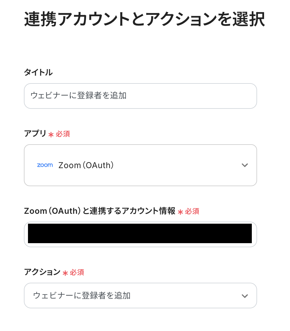 ・Zoomのプランによって利用できるアクションとそうでないアクションがあるため、ご注意ください。