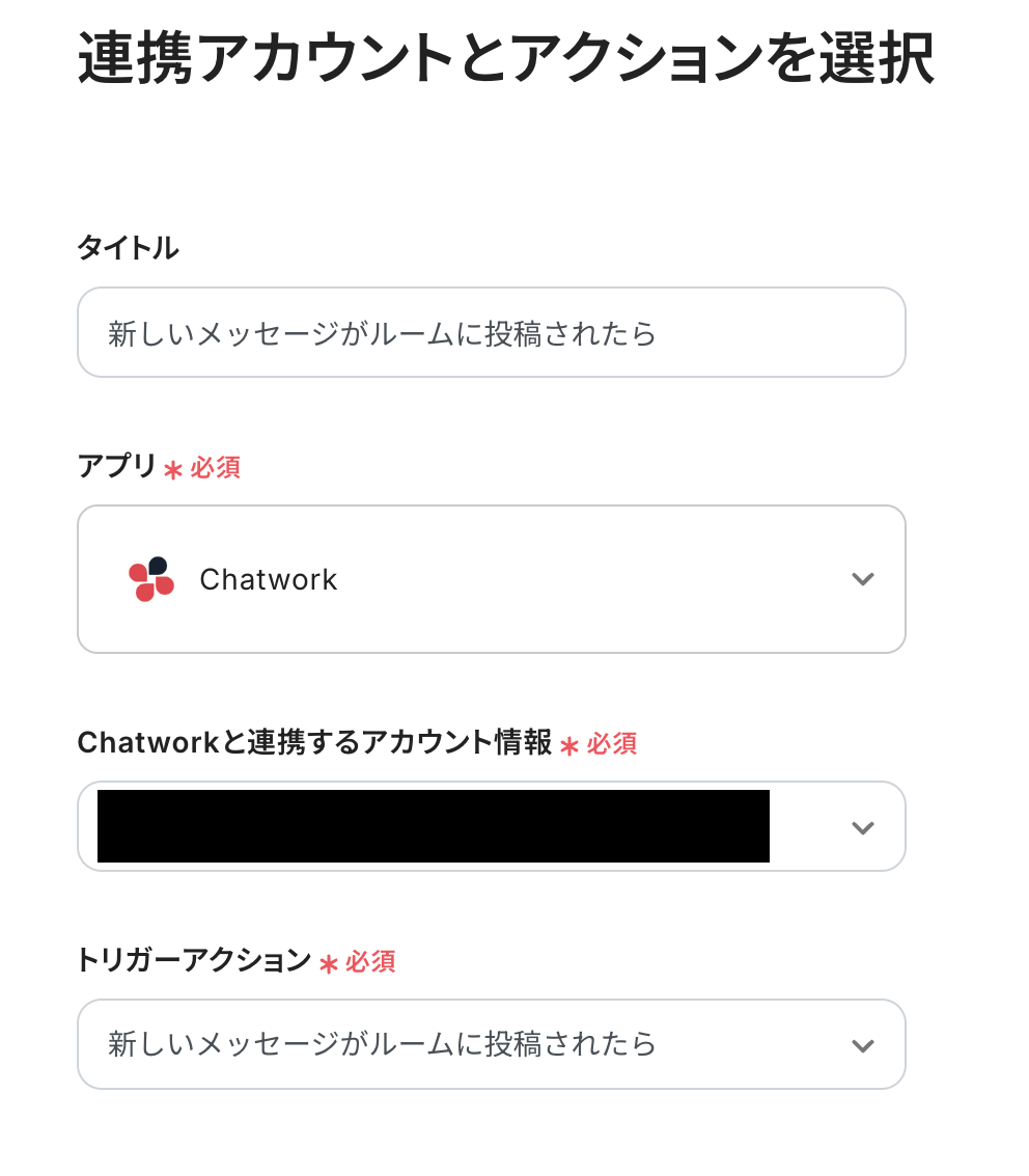 「Chatworkと連携するアカウント情報」:合っているか確認