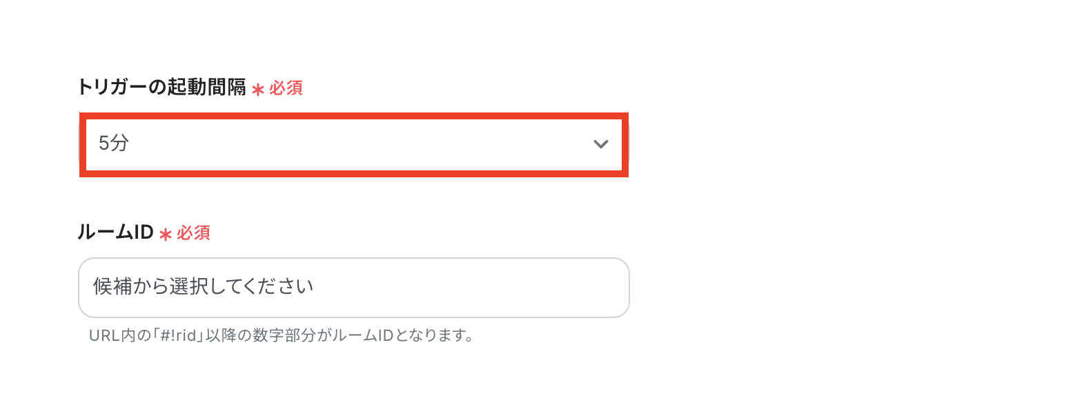 トリガーの起動間隔は、5分・10分・15分・30分・60分から選べます。