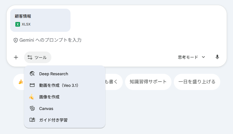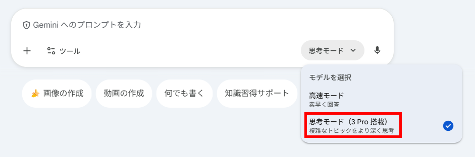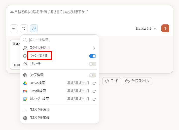 「ツール」マークをクリックし、「じっくり考える(拡張思考)」を選択します。