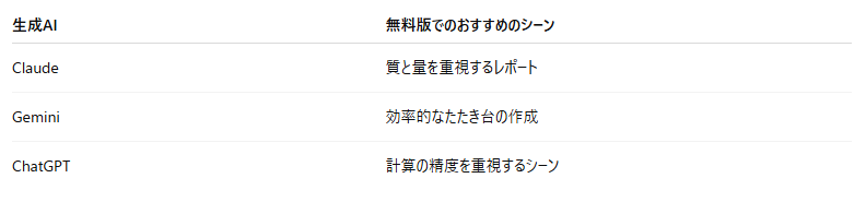 実務で通用する質の高いアウトプットを無料で目指すなら、計算とWord出力の手間さえ惜しまなければ、Claudeの文章力を中心に据えるのが最も生産性を高める近道だと言えます。
