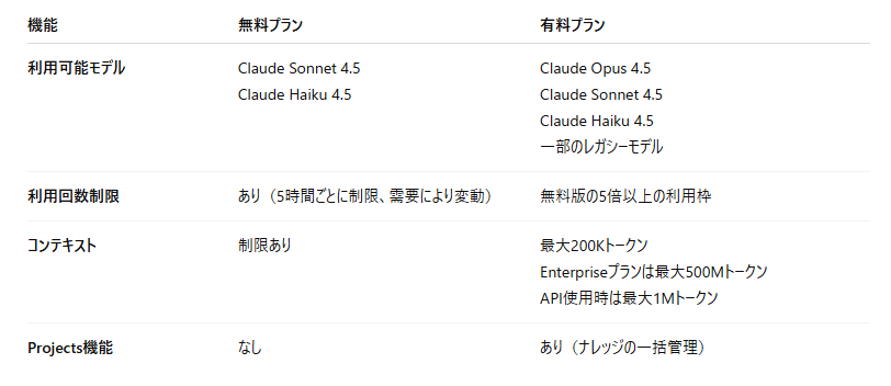 無料プランと有料プランでは、コンテキストウィンドウの長さには違いがありますが、モデルの性能差はないとされています。