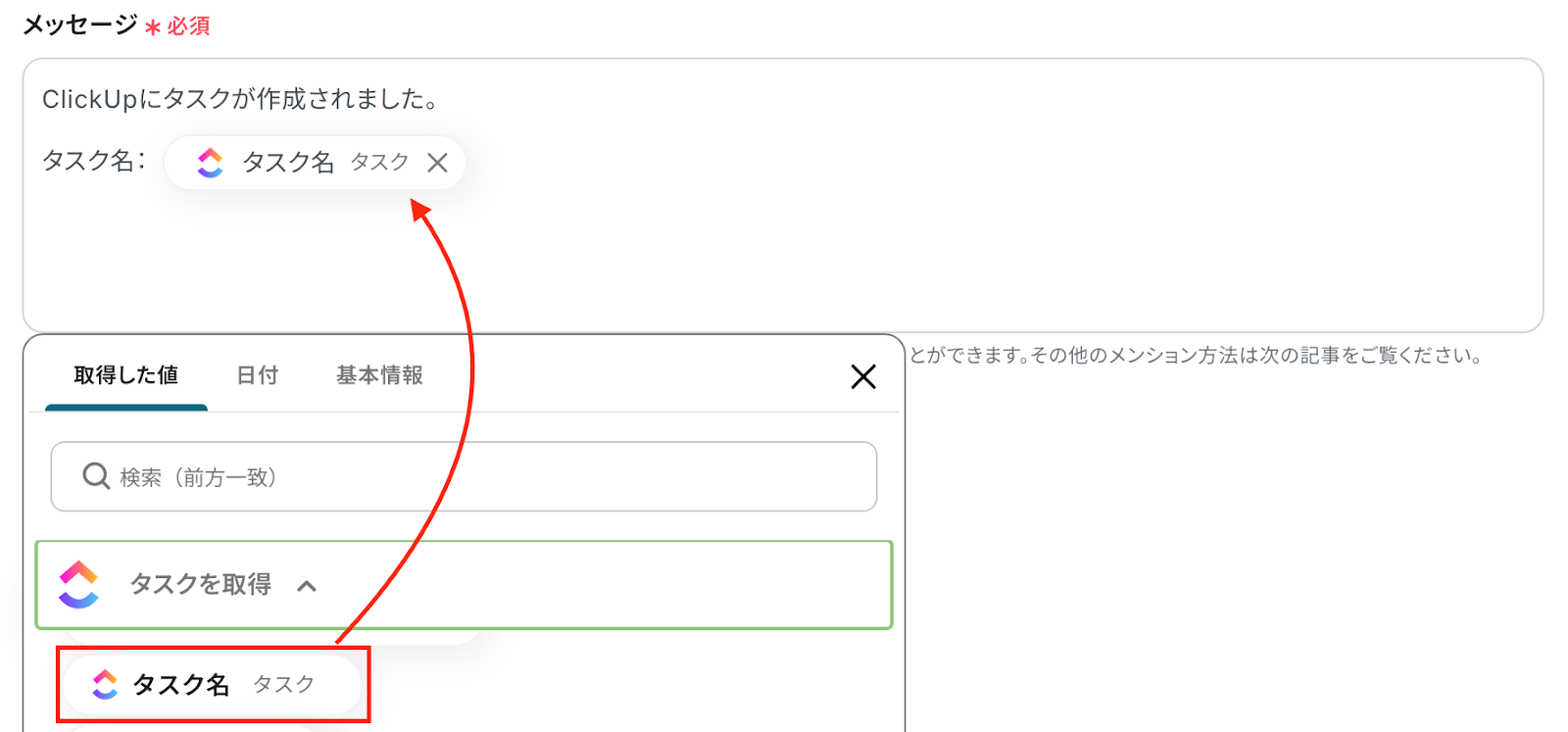ClickUpをトリガーとして使用したテンプレート