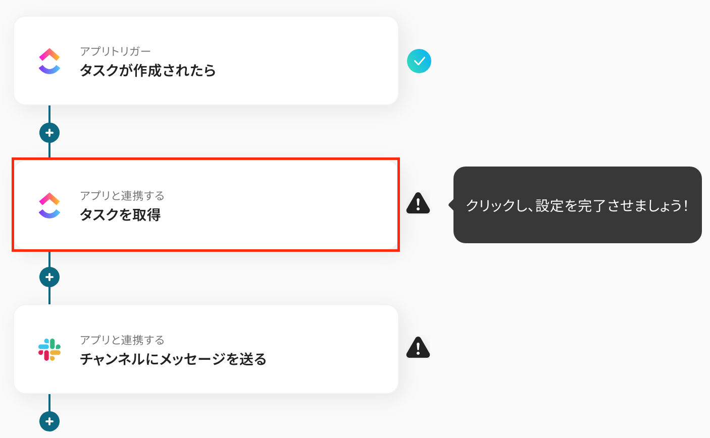次に、ClickUpのタスクを取得する設定を行います。
