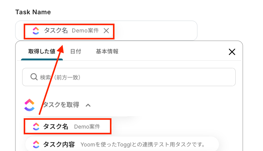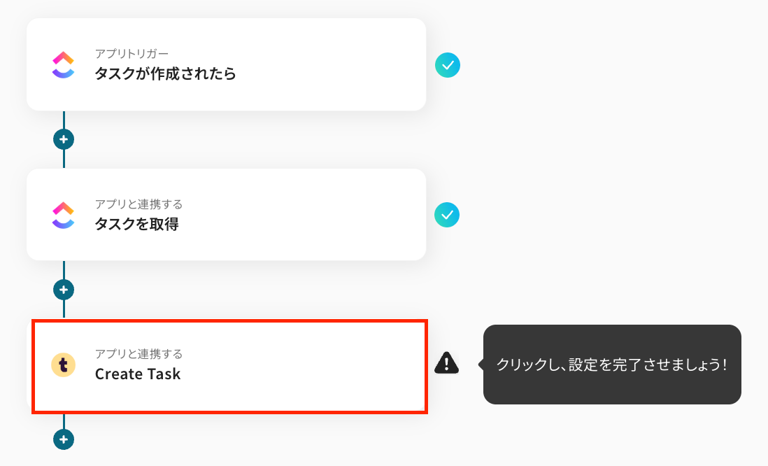 続いて、ClickUpに作成されたタスク情報を基に、Togglにタスクを追加する設定を行います。