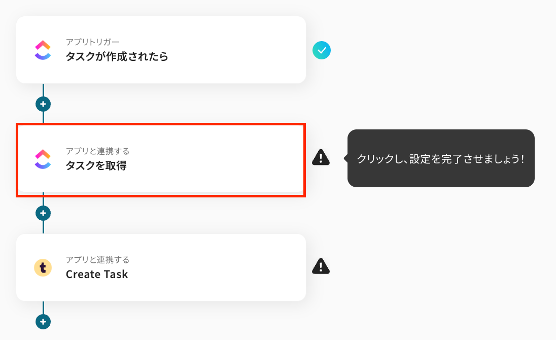 続いて、ClickUpで作成されたタスクの詳細情報を取得する設定を行います。