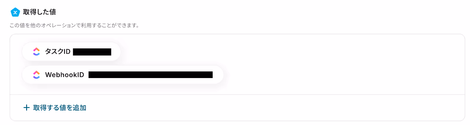 「team_id」は、必ず候補から選択し設定してください。「space_id」、「folder_id」、「list_id」は、用途に合わせて任意で設定してください。