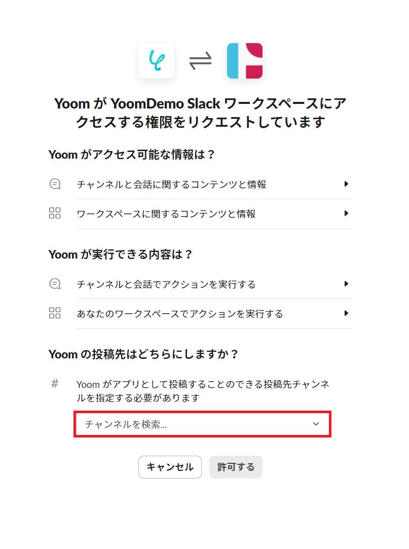 SlackチャンネルにYoomアプリをインストールする方法はこちらを確認してください。
