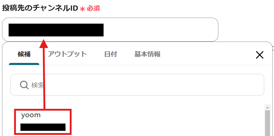 次に、「投稿先のチャンネルID」を候補から選択しましょう。