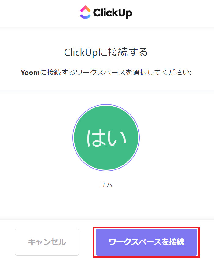 以下の画面が表示されるので、接続するワークスペースに誤りがないか確認し、「ワークスペースを接続」をクリックします。