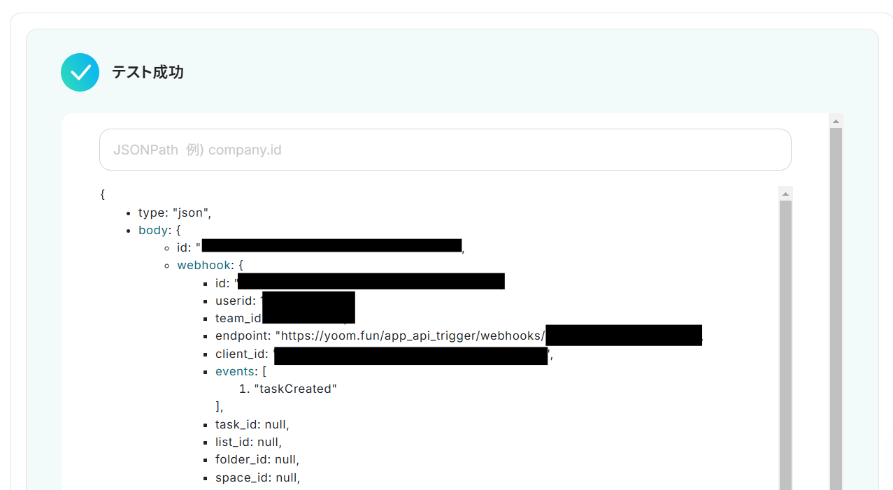 こちらがClickUpでタスクが作成されたら、Slackに通知するフローでした。