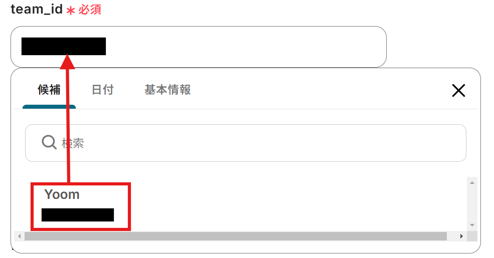 枠内をクリックすると候補が表示されるので、該当するIDを選択しましょう。