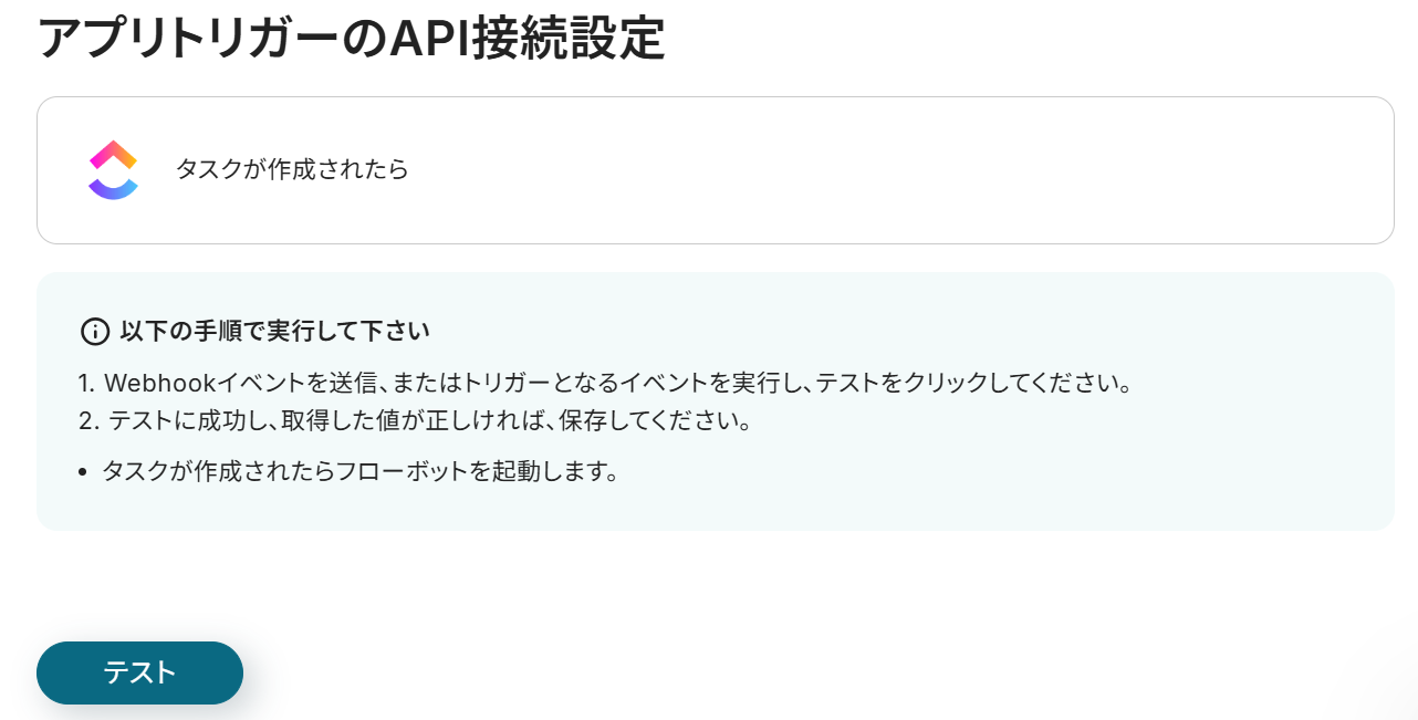 ステップ3:フローの起点となるClickUpのトリガーを設定