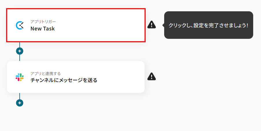 先ほどの画面で「OK」をクリックして、表示された画面のアプリトリガー「New Task」をクリックしましょう。