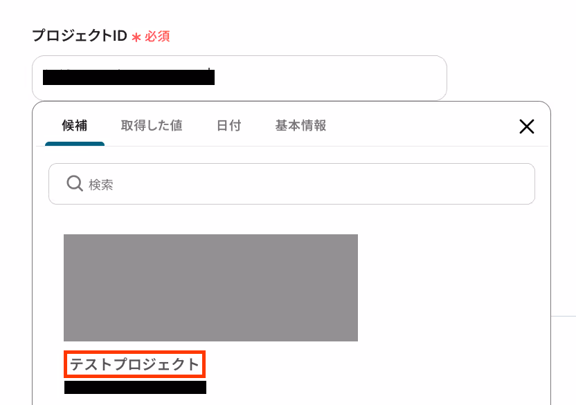 アウトプットとは、トリガーやオペレーション設定時に、「テスト」を実行して取得した値のことを指します。
