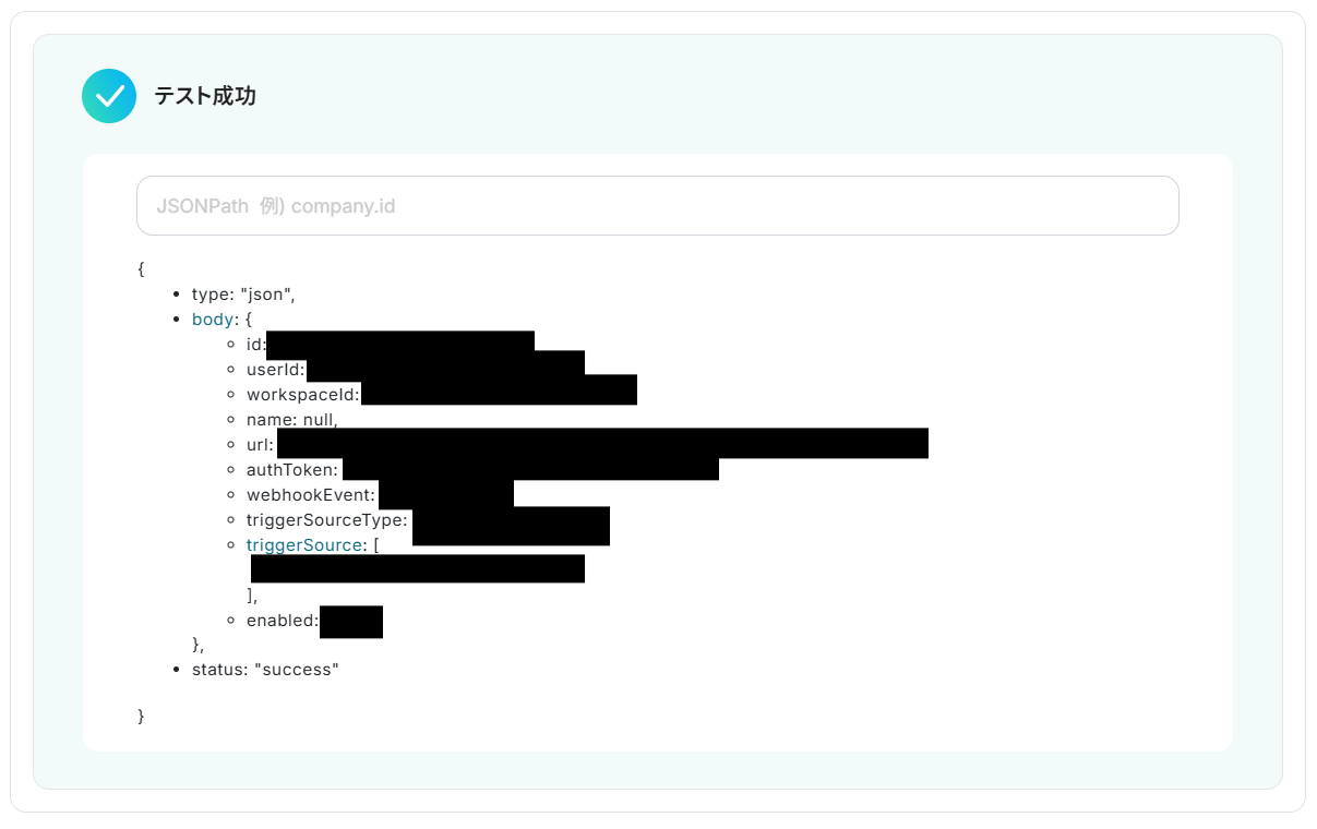 テストに成功すると「取得した値」に反映されます。詳しくは以下をご覧ください。