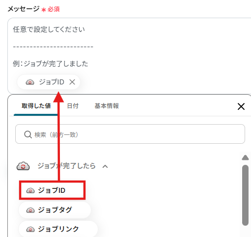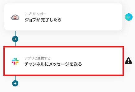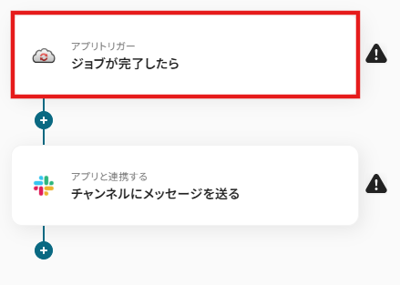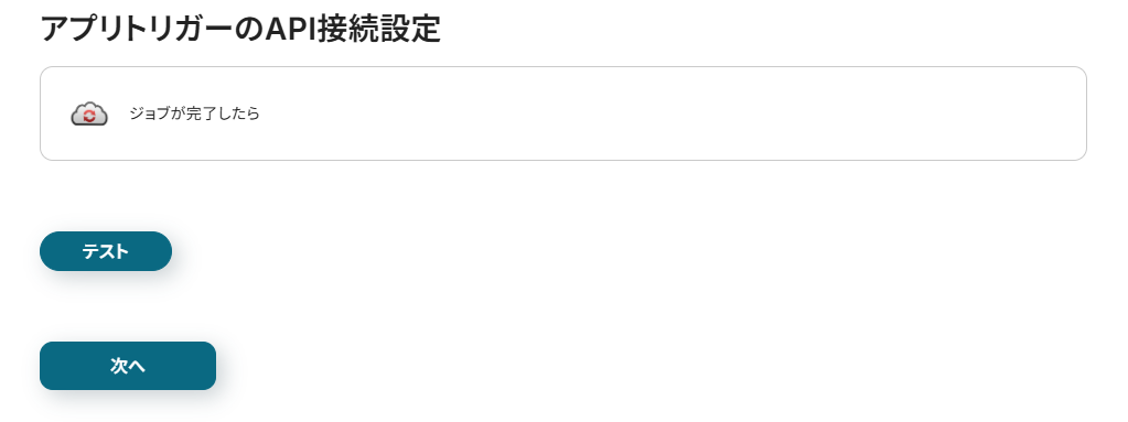 タイトルと連携するアカウント情報を任意で設定し、トリガーアクションはテンプレート通りに「ジョブが完了したら」のまま「次へ」をクリックして進んでください。