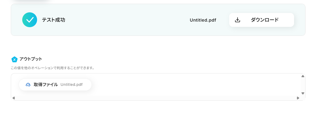 入力を終えたら「テスト」を実行し、ファイルが取得されたことを確認し「保存する」をクリックします。
