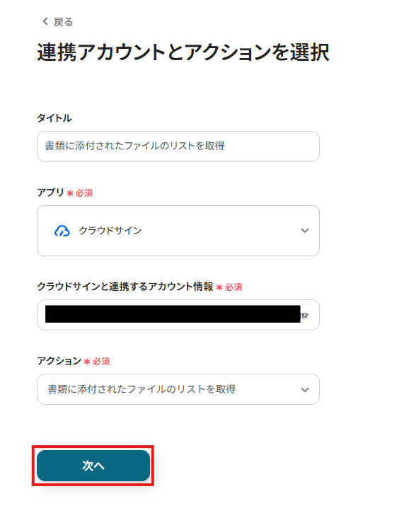 1.アプリと連携する「書類に添付されたファイルのリストを取得」をクリックしてください。