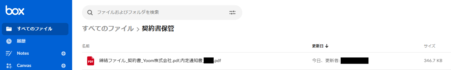 ※設定が完了すると、以下画像のように書類がboxに格納されます。
