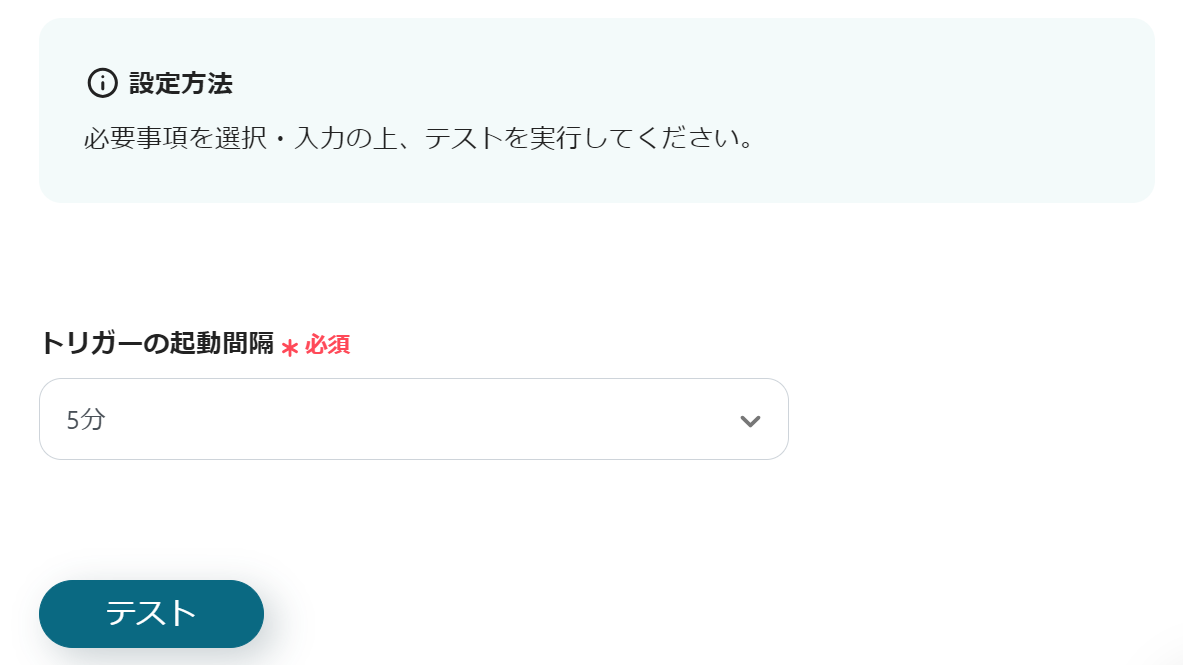 ・トリガーは5分、10分、15分、30分、60分の間隔で起動間隔を選択できます。