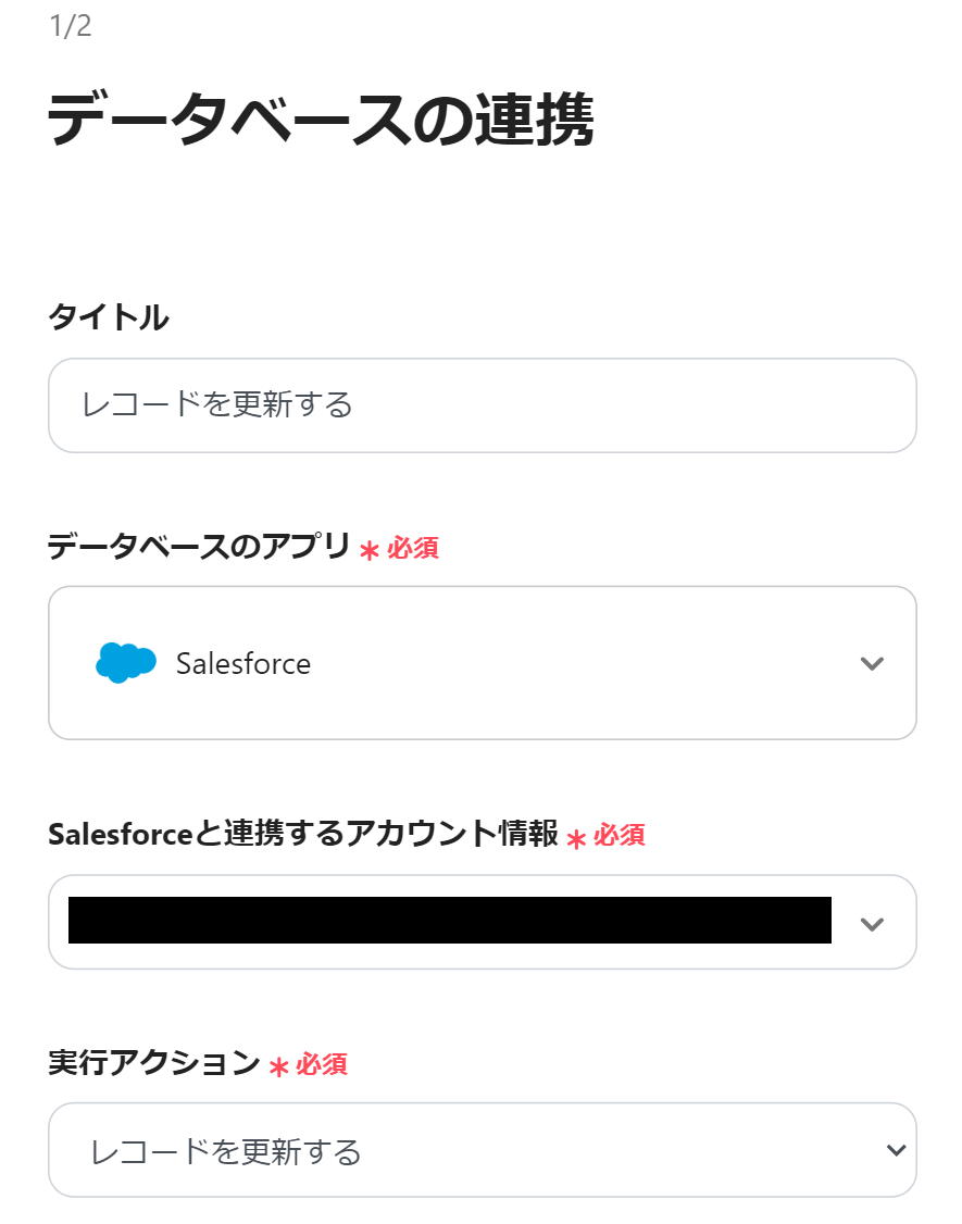 Salesforceにレコードを追加するステップで、「追加するレコードの値」にカスタム項目が表示されます。