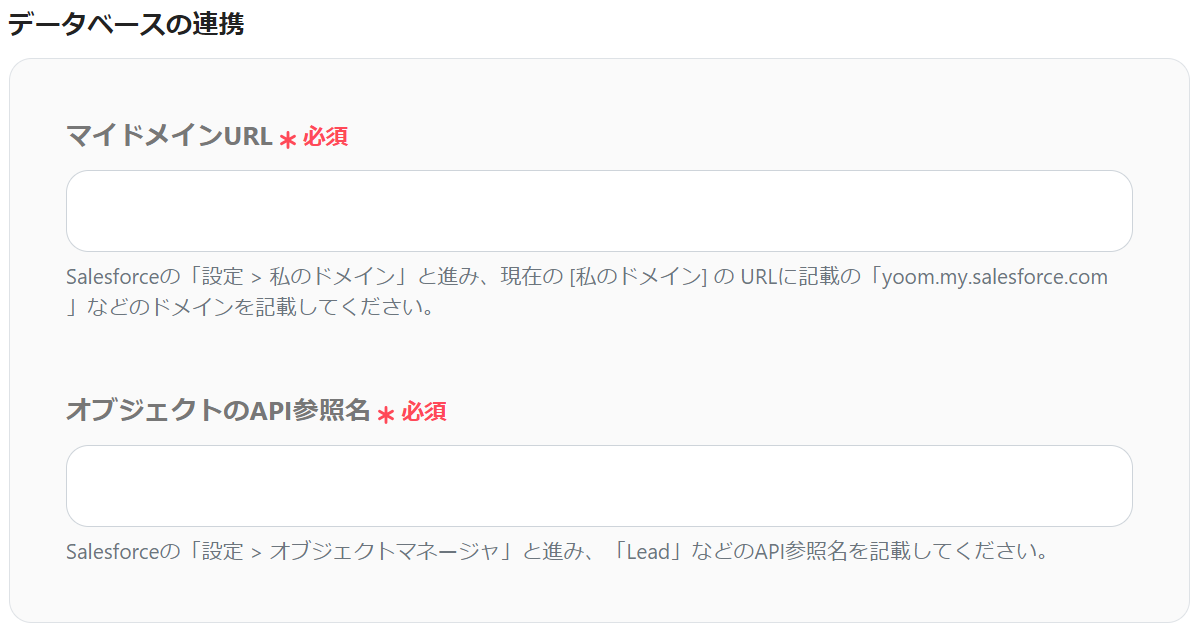 • Salesforceとの連携設定時に、ご利用の環境に合わせたマイドメインURLを設定してください