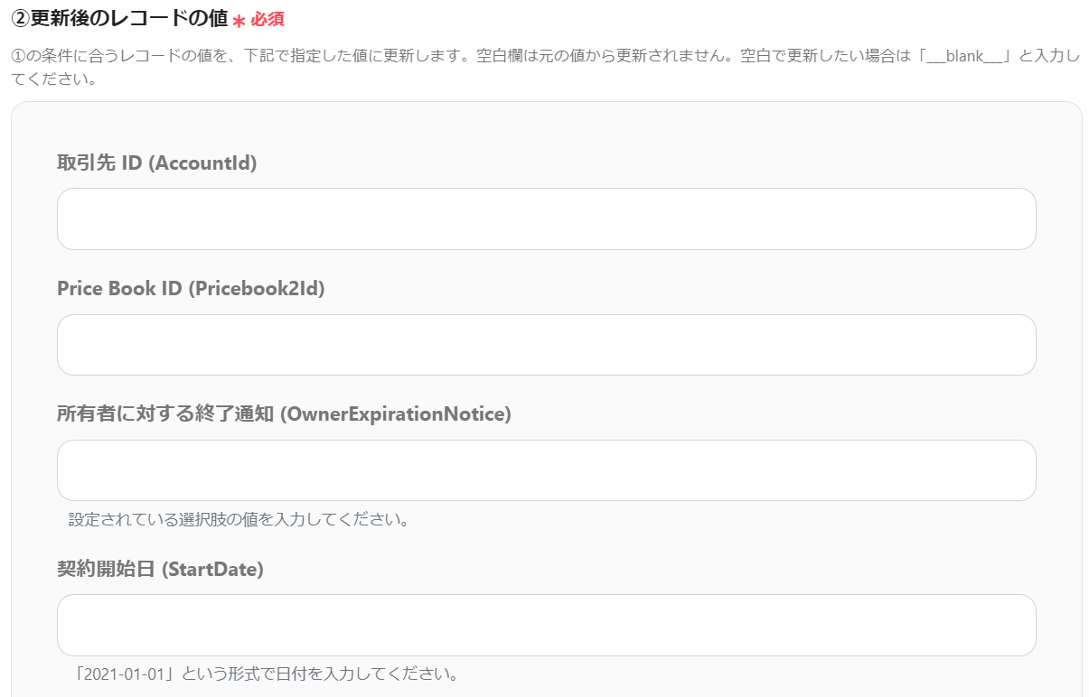 表示された該当の項目に、登録したい値を設定することで、連携の設定が完了します。