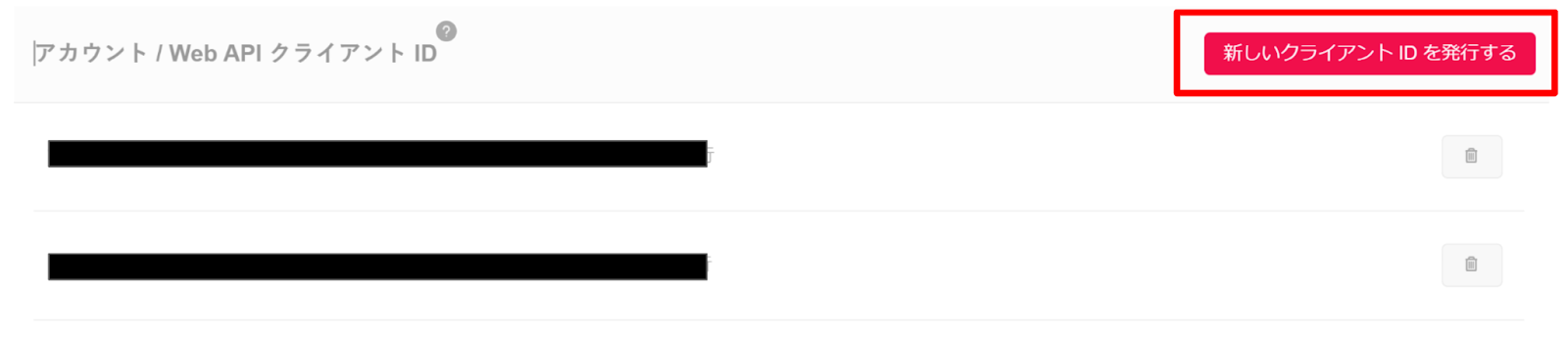 2. 右上の「新しいクライアントIDを発行する」を選択。