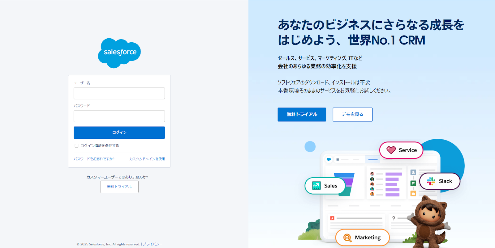 2. Salesforceのログイン画面に遷移後、「ユーザー名」と「パスワード」を入力してログイン。