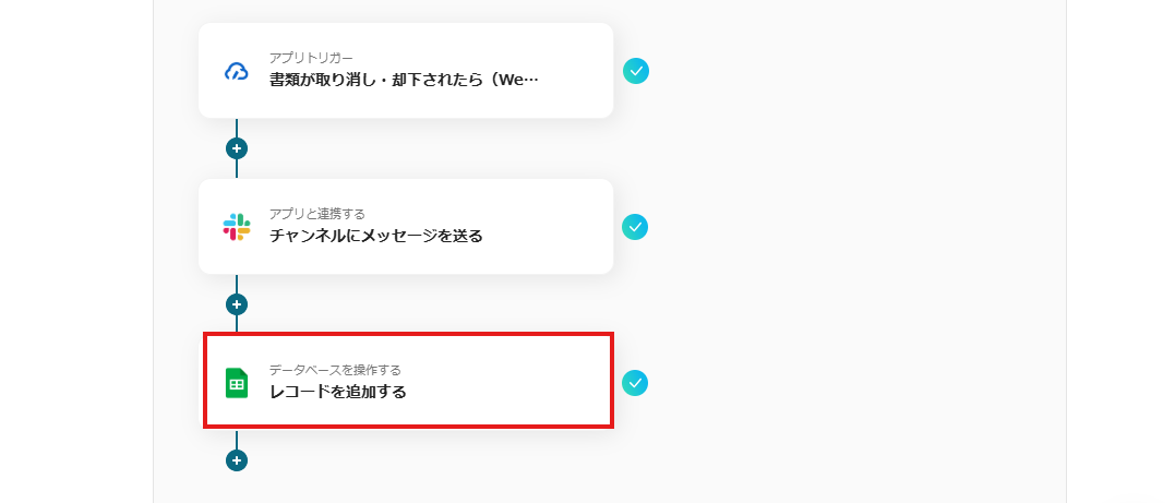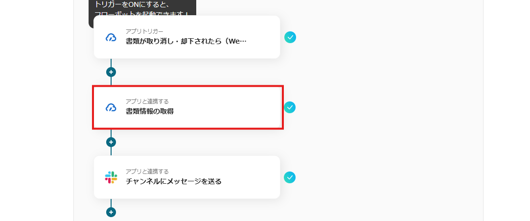 クラウドサインで書類が取り消し・却下されたら、Slackに連携してクラウドサインの内容を基にメッセージを送るフローです。