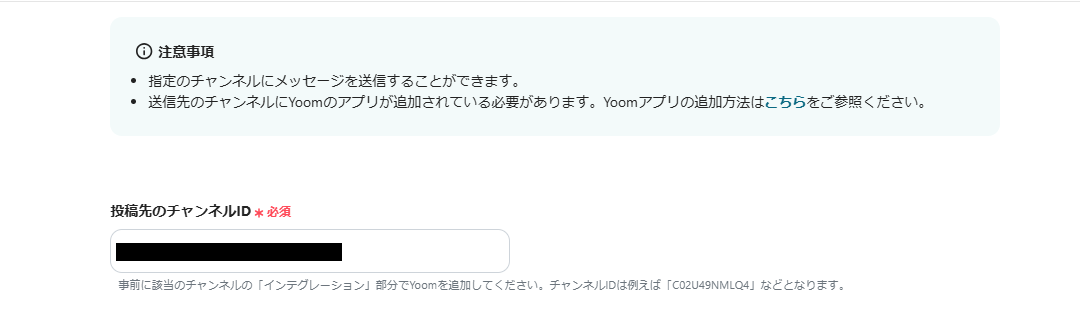 - Slackにメッセージを送信するアクションで、通知先のチャンネルを任意で指定してください。