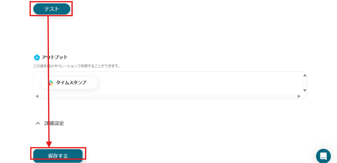 - Slackへの投稿アクションでは、投稿先のチャンネルIDやスレッドのタイムスタンプ、投稿するメッセージ内容を任意で設定してください。