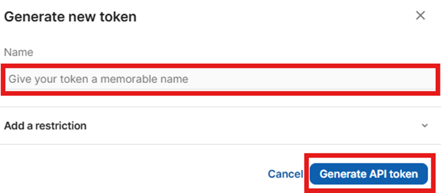 名前を任意で設定し、「Generate API token」を選択しましょう。