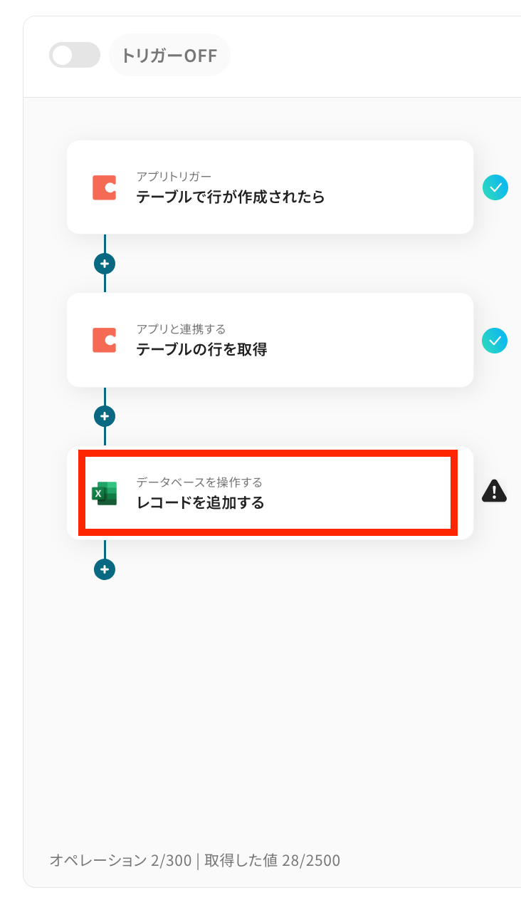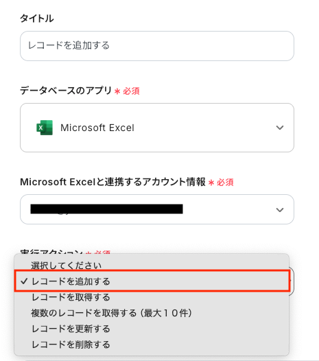 最後のオペレーションにある、「レコードを追加する」をクリックしてください。