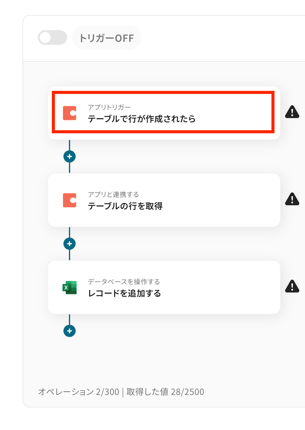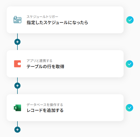 このようにスケジュールトリガーを設定することで、定めた日時に自動でデータ転記を行えるようになります。