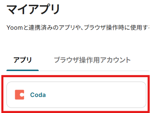 「マイアプリ」にCodaが表示されていれば連携完了です!