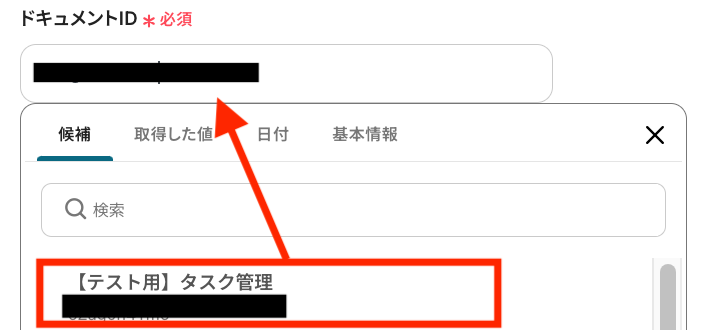 次に「ドキュメントID」を候補から選択しましょう。