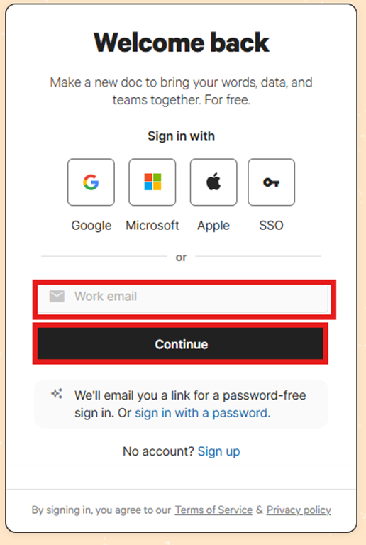 Codaにサインインしましょう。